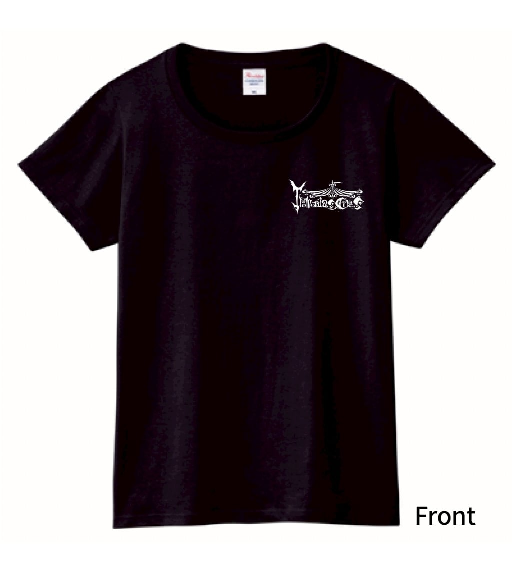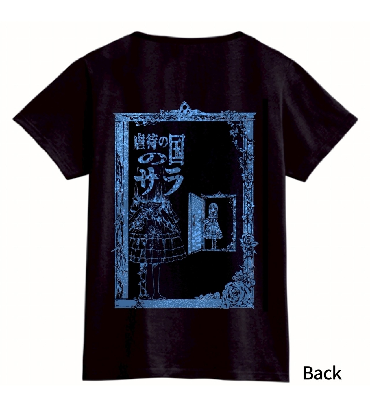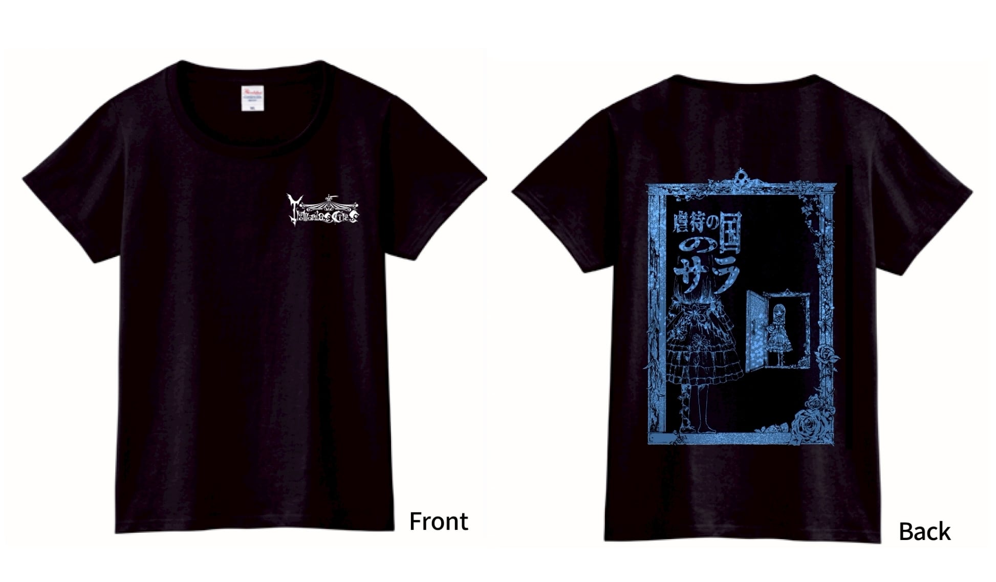 ▶前面に劇団ロゴ、背面に劇団員・デザイナーのアカバネが描いた『虐待の国のサラ』のイメージイラストがプリントされています。