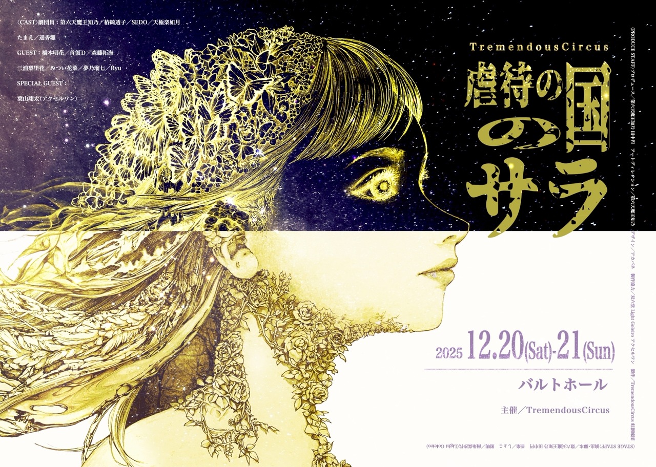 プロデュース/第六天魔王知乃 田中円 遥香雛 アートディレクション/第六天魔王知乃 デザイン/アカバネ 制作/紫京院瑞姫 製作協力/双六堂 Light Goleiro アクセルワン BlackArtsTechs 製作/TremendousCircus 虹創旅団 主催/TremendousCircus